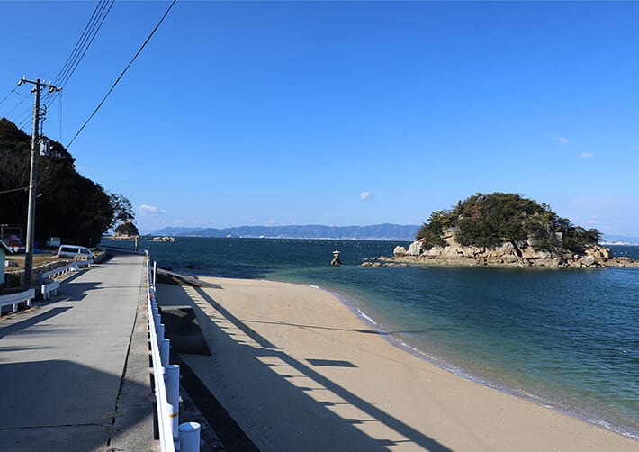 住吉港より南約11kmの笠岡諸島にあり、北木島の北、高島の南に位置している。岡山県屈指の海水浴場として人気で、民宿、海の家もありシーカヤックなどのマリンスポーツも楽しむことができます。