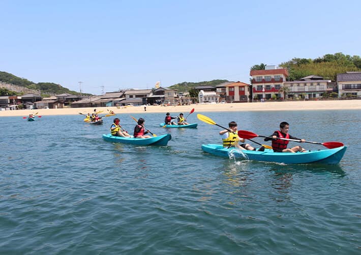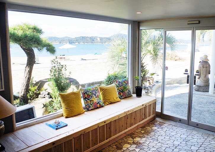 目の前が白石島海水浴場、ビーチまで数十歩で海の中へと、夏は海を楽しみ、SUPやシーカヤックなどの海のアクティビティを堪能できます。春や秋は、実はビーチでのBBQに最適な季節。海風を感じながら楽しんでください。館内には総支配人が取りそろえた本や雑誌が充実したライブラリーもあります。冬でも暖かいライブラリーから海を眺めながら、ドリンクなどとともに、読書のひとときも素敵です。