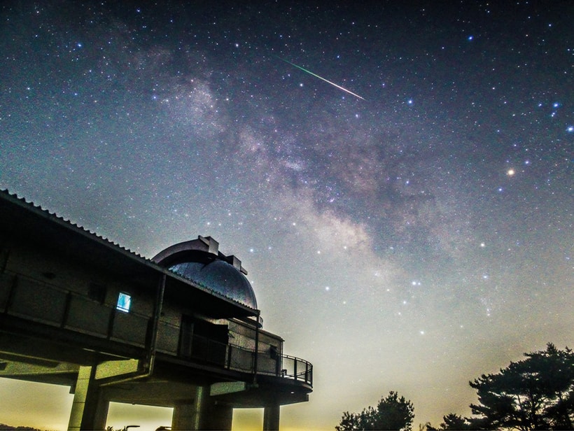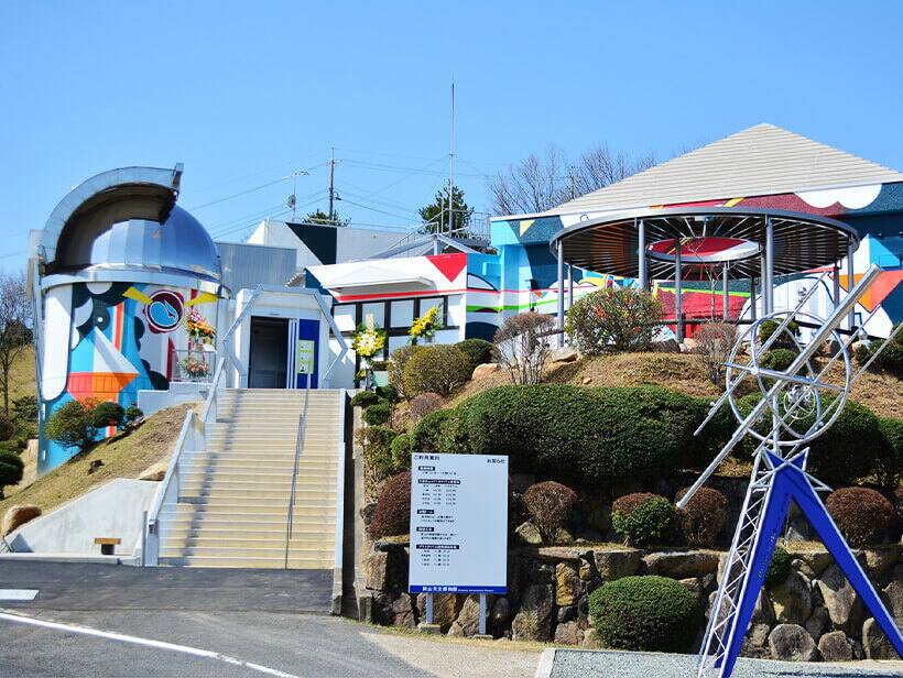 井原市美星町の高台に建つ天文台です。“360度パノラマ展望”は星空を鑑賞するには絶好のロケーション。口径101cmの望遠鏡を持つ国内でも最大規模の公開天文台でスターウォッチングが楽しめます。