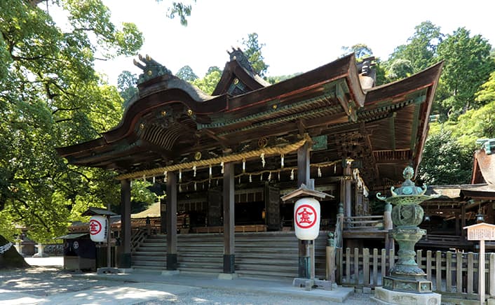 長く伸びた石段の参道が有名で、道中にも重要文化財の建築物が点在しています。