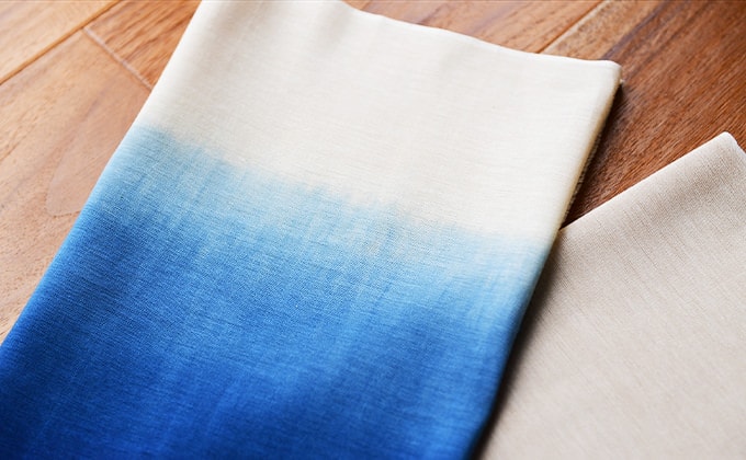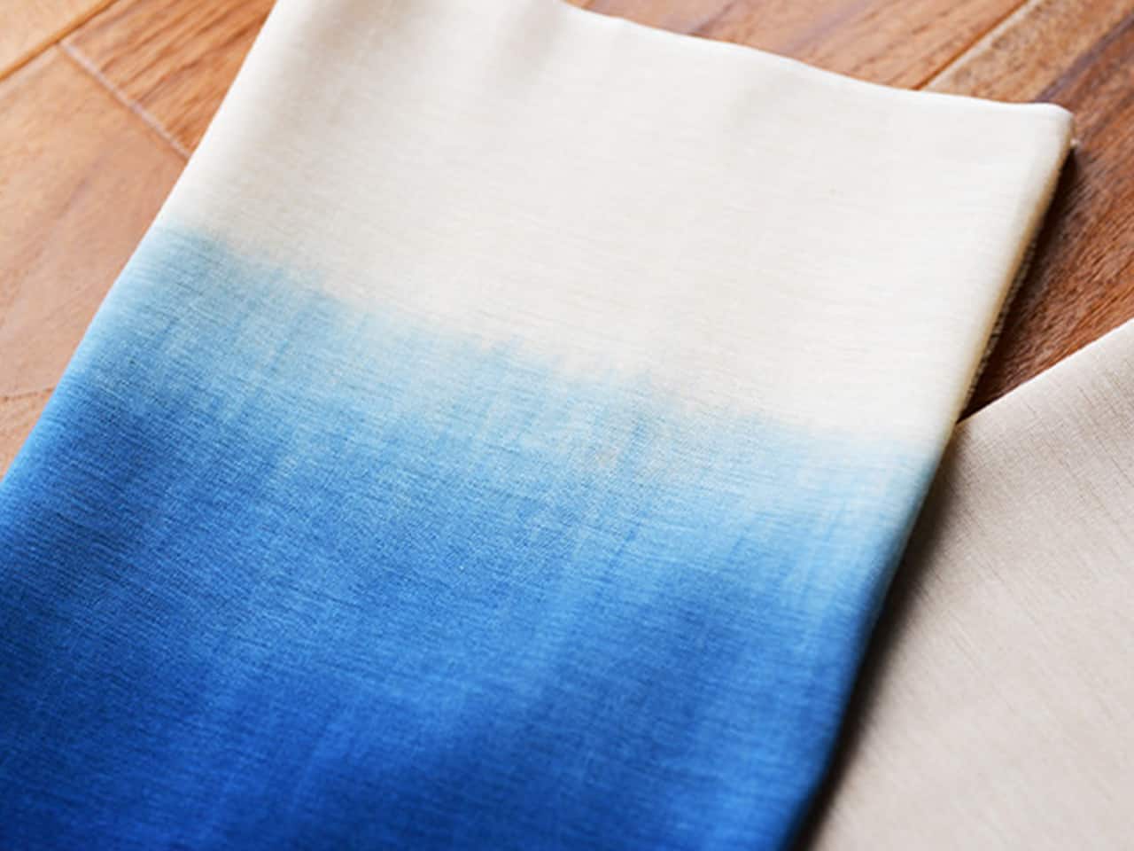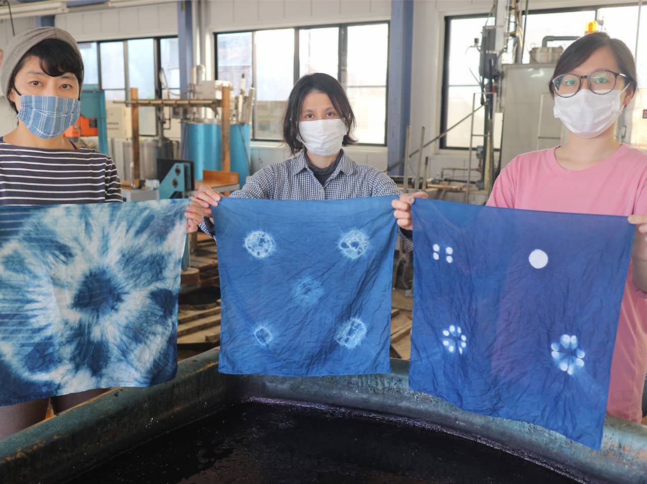 徳島県の伝統産業である「藍染」。徳島市の藍染体験施設「技の館」では、講師の丁寧な指導のもとで気軽に「藍染体験」ができます。また、葉っぱビジネスで知られる上勝町で誕生したファブリックブランド「KINOF」の手ぬぐいは、間伐材の繊維を活かした「木糸」で織り上げたもの。 SDGsを体感できる「KINOF」の手ぬぐいを使って、あなただけの1枚を染め上げてください。