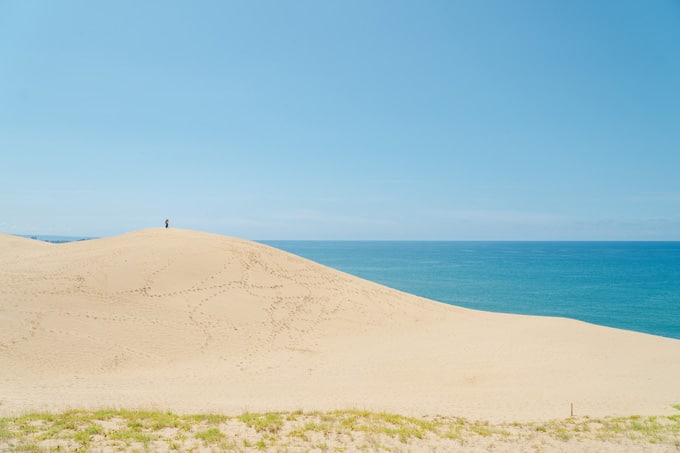 鳥取砂丘は東西16km、南北2.4kmにわたる日本最大級の砂丘です。粒の細かなサラサラとした砂は中国山地から千代川を通って運ばれ、10万年の歳月をかけて波と風が砂丘を形作りました。雄大で美しい起伏は見る人を圧倒し、時間や季節、気象によって刻々と変化する姿は何度訪れても飽きることがありません。
