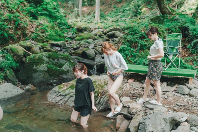 たらたらと汗が体を伝い、じっくり体の芯まで温まったらそばを流れる小川にダイブ。 自然の川の中に人力で掘った水風呂で体を整えます。キリっと冷たい天然水が毛穴の奥まで引き締めてクールダウン。森と一体になる不思議な感覚を味わえる、最高のデトックス体験です。