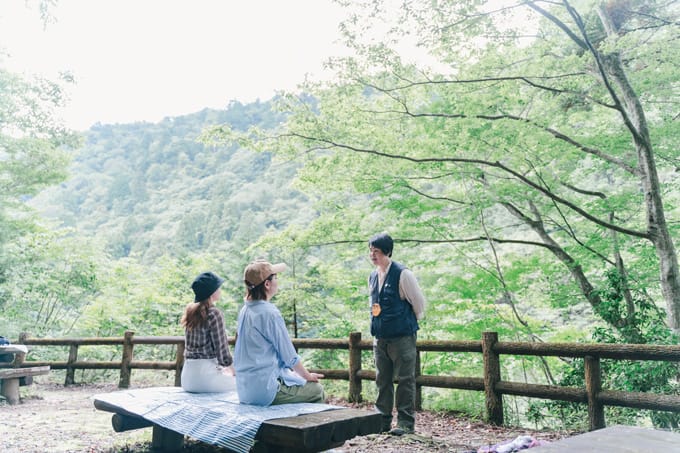 2日目は八頭町の隣の智頭町で「森林セラピー」に参加します。森林セラピーとは科学的な証拠に裏付けされた森の癒し効果。森に入ると清々しい気持ちになったり、リフレッシュしたりしますが、それは樹木が発散する「フィトンチッド」という揮発性の成分のおかげです。智頭町は鳥取県で唯一、特定非営利活動法人森林セラピーソサエティによる森林セラピー基地として認定され、「芦津(あしづ)渓谷の自然歩道3コース」「こもれびの森コース」「天木(あまぎ)森林公園コース」「横瀬(よこせ)渓谷コース」があります。特に午前中は成分が森に濃厚に漂っているので、午前スタートがおすすめです。