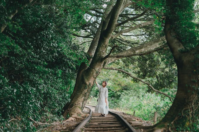 明治45年に開通した旧国鉄倉吉線は、現在の倉吉駅と関金の山守(やまもり)駅までの約20kmを結びました。しかしバスやマイカーの普及などで昭和60年に全線が廃止され、72年の歴史に幕を閉じました。廃線後も一部のレールや駅ホーム、トンネルが残され、今も市内の各所で当時の面影に触れることができます。特に関金にある泰久寺駅跡から山守トンネルまでの約500mは、幻想的な風景が広がる人気スポットです。スタート地点の古い駅ホームは冒険の始まりを予感させます。行く手を阻むように成長した大木や、美しい山並みを望む田園風景、そして最大の見せ場は竹林のトンネル。天を覆うように成長した竹林の中を、一直線にレールが貫く風景は「日本一美しい廃線跡」と話題に!竹林を抜けると鬱蒼とした森の中。その先の山守トンネルは廃線跡トレッキングツアーに参加すれば、中を歩くこともできます。