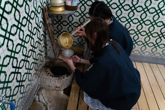 ラドンとはラジウム鉱石から生じる微弱放射線を出すガスのことで、源泉付近の空気中や温泉水の中にあるそれを呼吸や飲泉で取り込むと新陳代謝が活発になり免疫力や自然治癒力が高まる「ホルミシス効果」が期待できます。ゆったりお湯に浸かる以外に「吸う(熱気浴)」、「飲む(飲泉)」、「寝る(オンドル)」方法で温泉を楽しめると聞いて、さっそく浴衣に着替えて温泉へ向かいます。