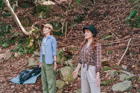 森林セラピーは単に森の中を歩くだけではありません。途中のポイントごとにヨガをしたり、目を閉じて瞑想しながら森を感じてみたりとさまざまな体験も用意しています。森の空気を胸いっぱいに吸い、感覚を研ぎ澄ませて大自然を感じていると、徐々に日常のストレスから解放されていくのがわかります。