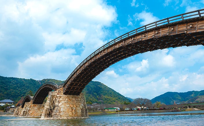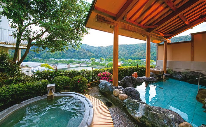 名橋「錦帯橋」と「岩国城」が見渡せる絶景の天然温泉です。刺激の少ないサラリとした優しい温泉です。