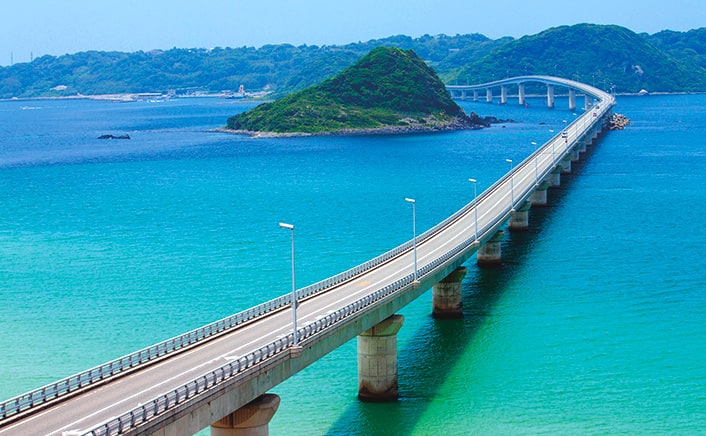 コバルトブルーの海士ケ瀬に架かる角島大橋は眼前。客室は全てオーシャンビューです。