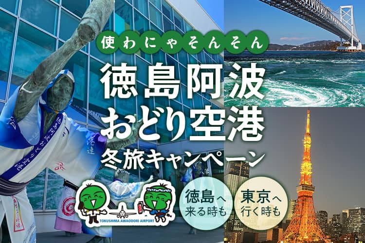 この冬は、徳島へ来る時も、東京へ行く時も、クーポンが使えておトクな「徳島阿波おどり空港」を利用して旅してみませんか?