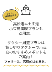 高松=土庄港の往復フェリーきっぷ&タクシー付き