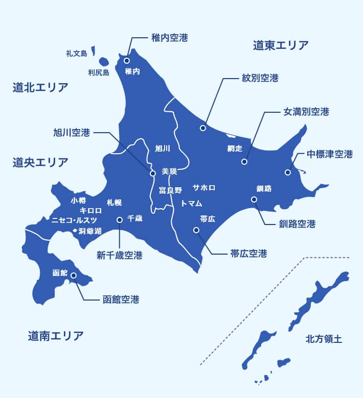 広大な北海道は地域によって魅力も様々。どこまでも続く広大な景色は四季折々でまるで異なり、観光、ゴルフ、スキー、ご当地グルメと様々な目的で何度でも訪れたくなります。