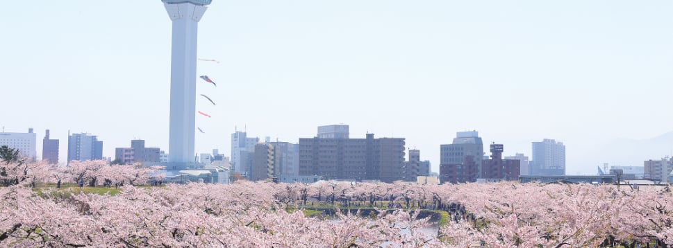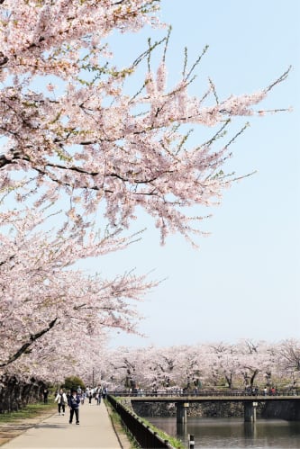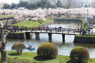 春はソメイヨシノを中心に約1,600本ものサクラが咲き乱れ、函館随一の花見の名所として毎年多くの市民や観光客でにぎわう公園。フジやツツジなども有名で、堀を歩いたりボートに乗ったりと、美しい花々をさまざまな角度から鑑賞できます。
