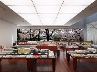 北海道を代表する菓子メーカー「六花亭」の直営店。多彩な和洋菓子を販売し、併設の喫茶室では「十勝強飯定食」などの食事やスイーツを提供。五稜郭公園に面したガラス窓から満開の桜を眺めながら、ランチやティータイムが楽しめます。