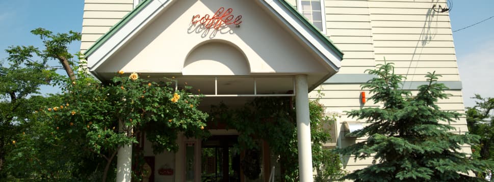五稜郭公園のすぐ横に立ち木々に囲まれた洋館風のかわいらしい喫茶店。香り高いコーヒーとともに焼きたてパンやピザ、シチュー、デザートなど手作りのフードメニューが味わえます。春から秋は公園に面したテラス席がおすすめです。