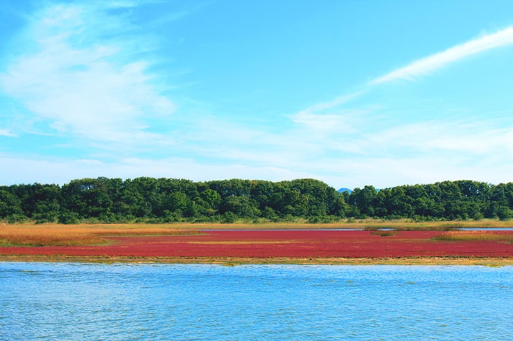 コムケ湖は、紋別市街から湧別町寄りに約20km、オホーツク海に面した場所にあります。コムケは、アイヌ語で『曲がった』の意で、湖は細長く複雑な形をしています。夏にはハマナス、コケモモといった高山植物が咲き、秋には真っ赤なジュウタンを敷きつめたかのように広がるサンゴ草群落を鑑賞することができます。