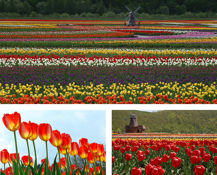 北海道湧別町の総面積12.5万平方メートル、作付け面積7万平方メートルの広大な敷地で、およそ200品種のチューリップを植栽している「かみゆうべつチューリップ公園