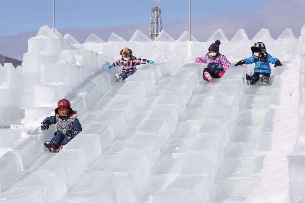 雪の滑り台や冬まつりも開催予定ですが、積雪や状況により変更・休止する場合もあります。