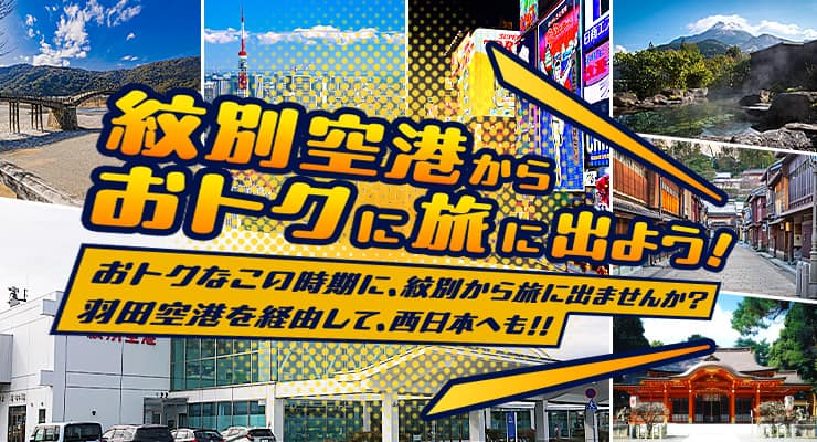 おトクなこの時期に、紋別から旅に出ませんか?羽田空港を経由して、西日本へも!!