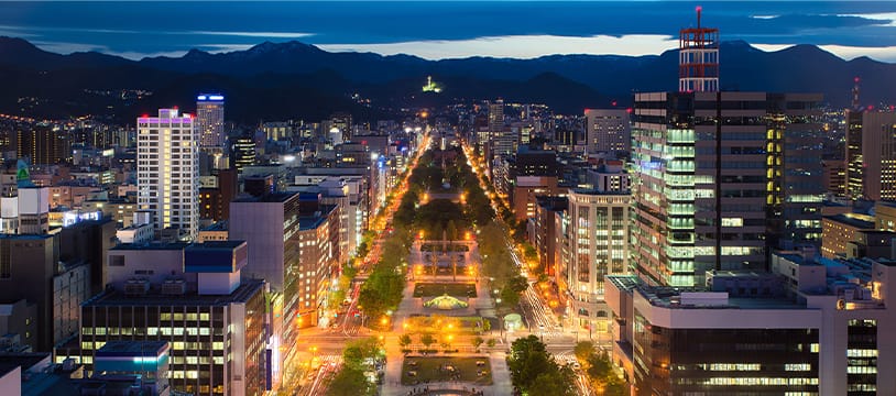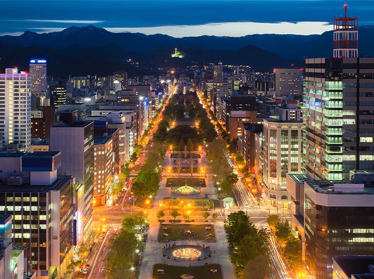 北海道の中心都市札幌は観光名所も多く、さっぽろ雪まつり等のイベントも大人気。札幌ラーメン、ジンギスカン、スープカレーなどグルメの街でもあります。