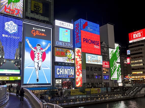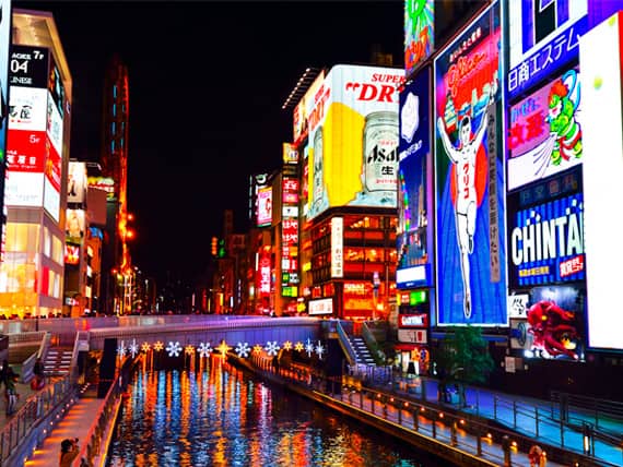 大阪:道頓堀のグリコ看板、通天閣、新世界