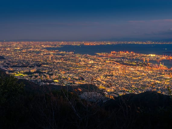 神戸:ハーバーランドの夜景、異人館の街並み