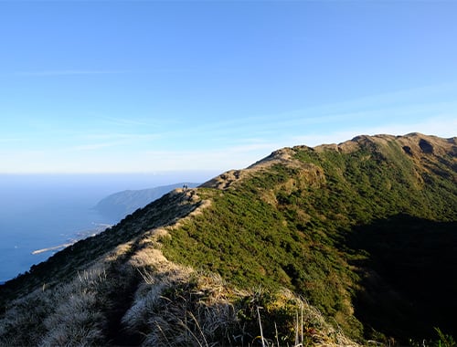 標高854mで伊豆諸島最高峰の八丈富士は人気のトレッキングスポットです。山頂にはぽっかりと空いた断崖絶壁の火口があり、その中に生い茂る樹木や池を見下ろしながら約1時間かけて火口を一周する「お鉢めぐり」は迫力満点です。
