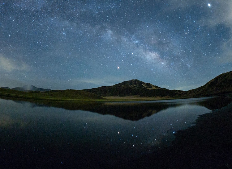噴煙を上げる中岳を望み、大きな池や放牧された馬が悠々と歩く姿など、絶好のロケーションを誇る草千里。阿蘇を代表する観光地のひとつです。夏は緑が鮮やかに輝き、冬は幻想的な白銀の世界に包まれます。