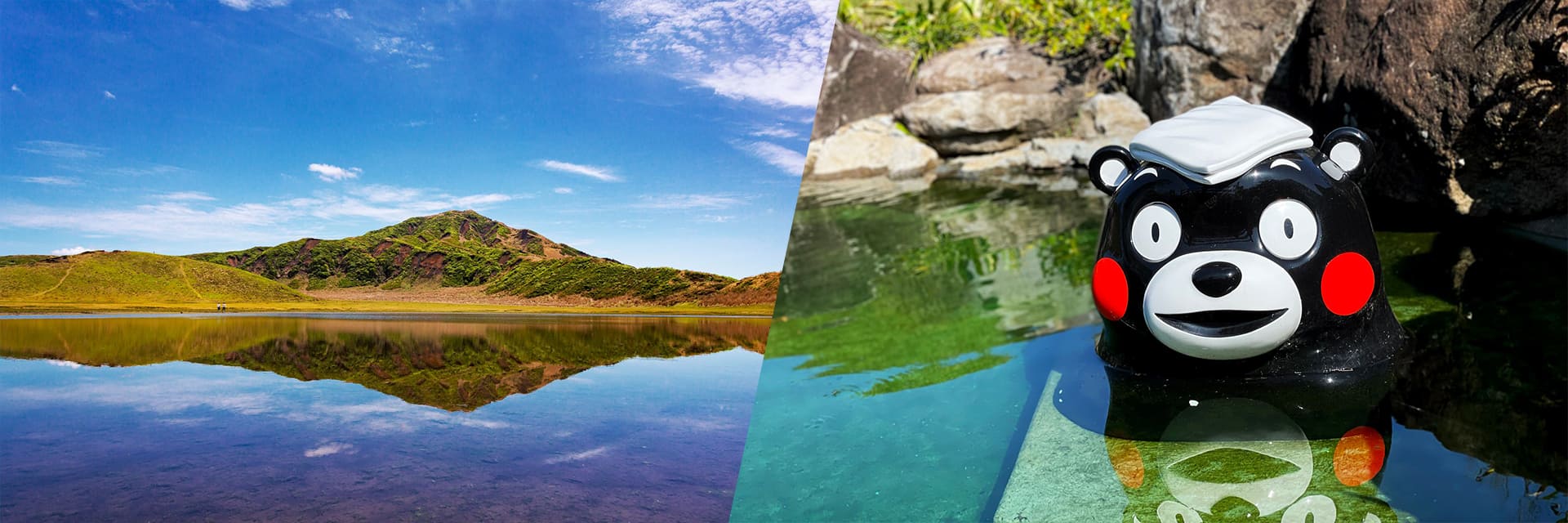 左:草千里(イメージ)/右:くまモンポート八代(イメージ)