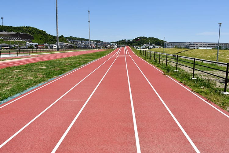 陸上競技場では希少な傾斜角2・3・4%の3レーン×100mの走路
