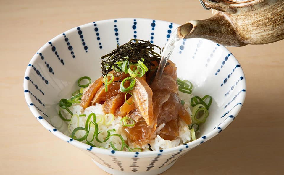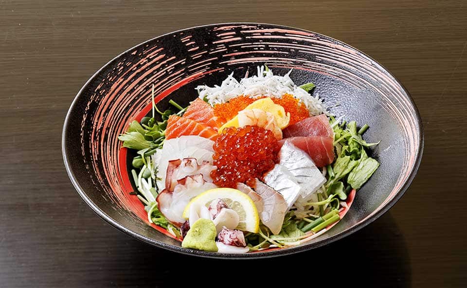 「死んだ魚は生では食べさせない」がモットー。福間漁港の漁師一家が営む「来進」では、朝締めの新鮮な鯛を使った「鯛茶づけ」(提供は5月~12月)が人気。そのほか、天然鯛を贅沢に使った「鯛バーガー」や旬の魚を使った丼もぜひお試しあれ!JR福間駅1階とアクセスも抜群です。