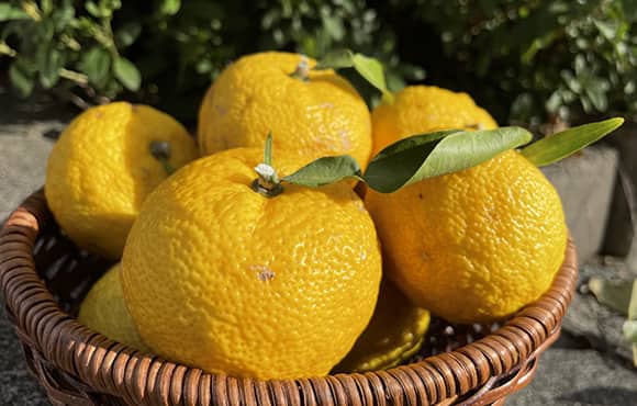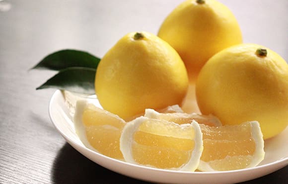 宮崎が原産のフルーツで、約200年前に偶然発見されたのがはじまりです。果実は温州みかんよりやや大きく、表皮は黄色で厚く、果肉は酸味があり甘さが控えめで独特の風味があります。グレープフルーツやレモンの味に近い味わいです。他の柑橘類とは違い、果実の表皮における白い部分もそのまま食べられるので、皮の黄色い表面だけを薄く剥いで食べ、砂糖や醤油につけて食べるなど独特の食べ方をするのも特徴です。