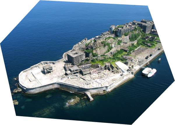 岸壁が島全体を囲い、高層鉄筋コンクリートが立ち並ぶ小さな海底炭坑の島は、その外観が軍艦「土佐」に似ているところから「軍艦島」と呼ばれるようになりました。