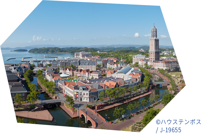 風光明媚な大村湾に面した広大な敷地の中に四季折々の美しい花々が咲き誇り、レンガ造りの重厚な街並みをめぐる運河が安らぎと癒しを与えてくれる滞在型リゾート。場内にはレストラン、ショップ、アミューズメント施設はもとよりホテル、美術館などもあり本格的なリゾートライフを満喫できます。