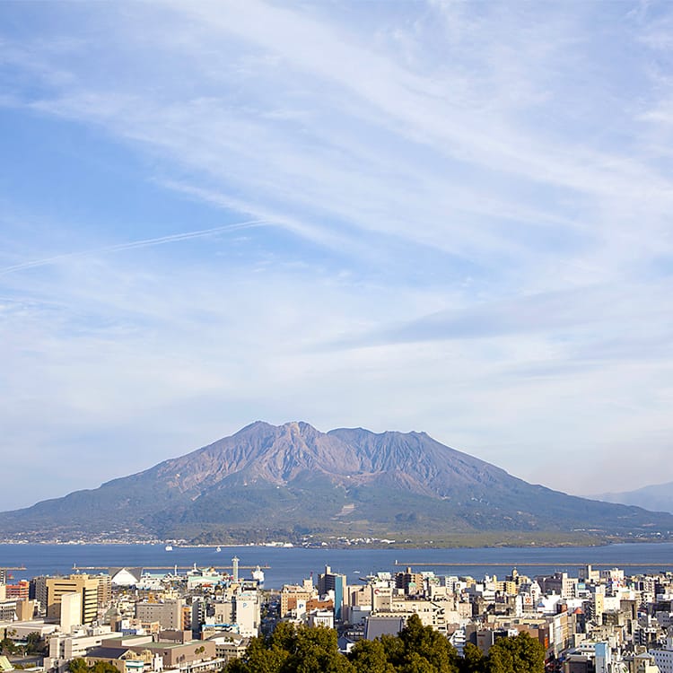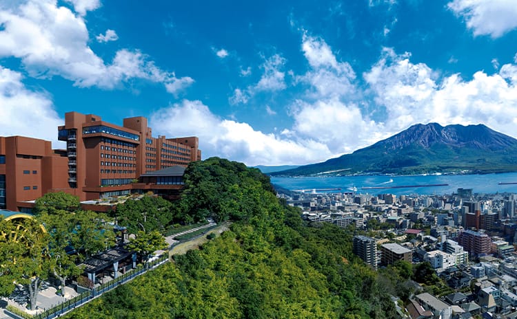 市街地を見渡す鹿児島の中心地、四季折々美しく移ろう標高108mの高台「城山」に位置しています。錦江湾とそこに浮かぶ桜島が一望できる展望露天風呂は、極上の癒し空間で、四季の景色が存分に堪能できます。