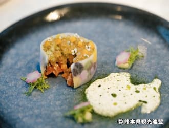 客室からは桜島や鹿児島市内の眺望を楽しめます。レストラン・バーでは、地元の食材をふんだんに使い、鹿児島の伝統を守りながら新しい食を提供。源泉かけ流しの足湯と温泉、スパはリラックスして楽しめる隠れ家のような空間です。