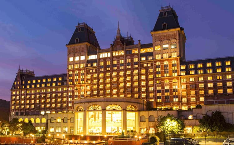広大なホテルのなかには、ダイナミックな眺望を楽しめる温泉 、ワクワクするような豊富なメニューのビュッフェ、大人から子供まで心湧くエンターテインメントなど 、テーマパークのような施設が充実しています。
