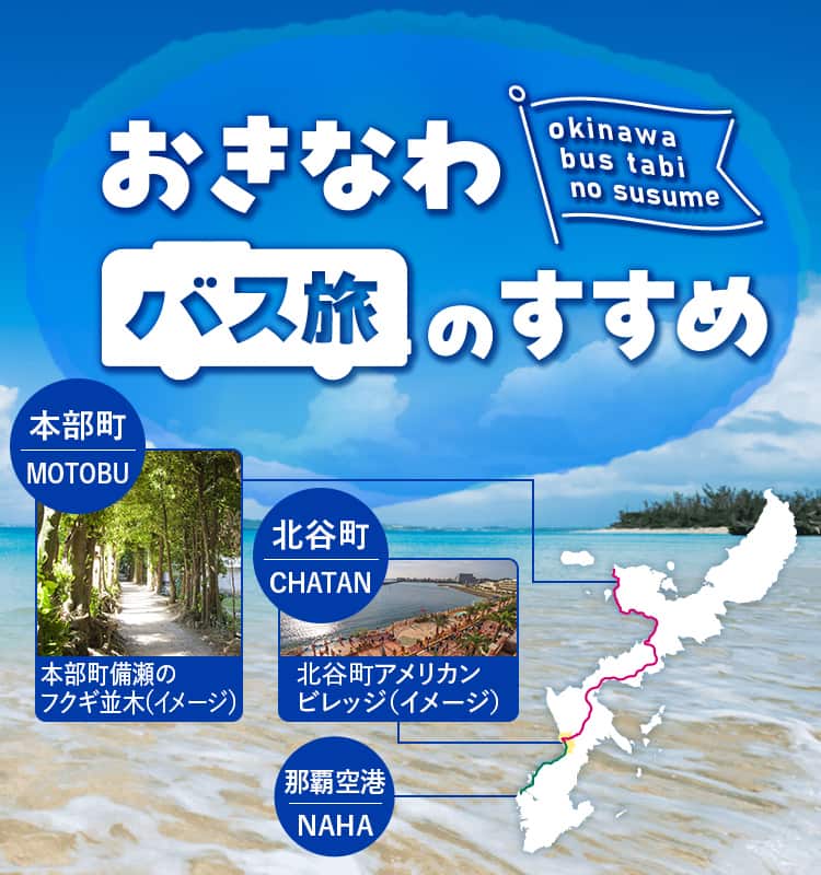 | 海洋博公園 | もとぶかりゆし市場 | 北谷町情報センター前 | ヒューイットリゾート那覇前 | |