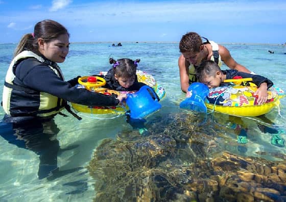 宮古島の美しい海を手軽に楽しめるシュノーケリングツアー。浅瀬で楽しめるので、初心者の方やお子様でも安心です。