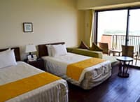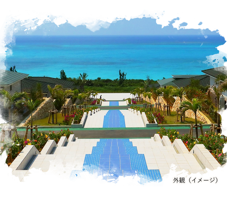 空港から車で10分。宮古島の南岸、ドイツ文化村に隣接した絶好のロケーション。南国の花々が咲くガーデンと明るい色調の館内は、上質のリゾートライフをお約束します。