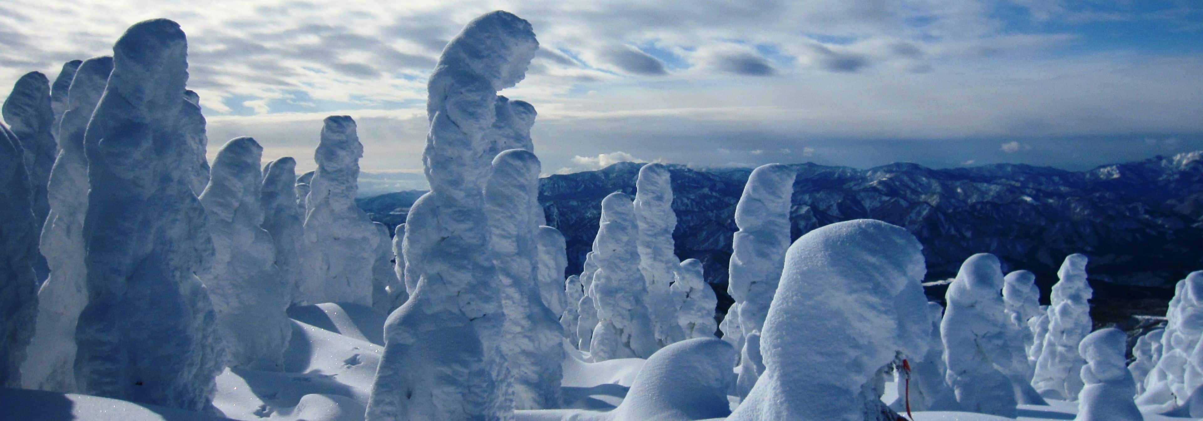 森吉山は、秋田県の中央東部に位置する約20km四方の山塊で、向岳(1,454m)を主峰に、一ノ腰、前岳、石森、ヒバクラ岳、カンバ森など東西3kmのカルデラを形成する独立峰です。花の百名山として、また水の郷とも呼ばれるほど豊かな大自然に恵まれ四季を通じてお楽しみいただけます。山頂まではゴンドラで約15分、どなたでも気軽に360度の壮大なパノラマが堪能できます。