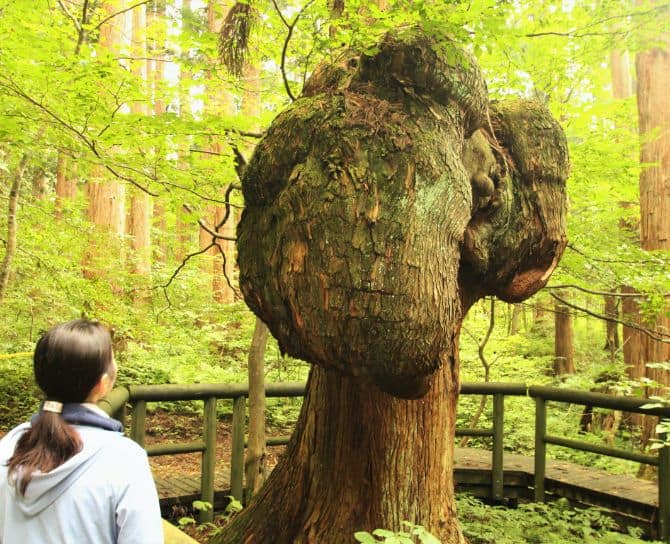 大林集落から広大な森林空間に車で約5分のところに、樹齢250年以上の天然秋田杉生育しています。約700本もの巨木が群立する中に、ひときわ奇妙な形をし、天を仰ぎ、地を見据える「コブ杉」が存在します。この巨木は、平成12年に林野庁選定「森の巨人たち百選」に選ばれました。村のシンボルとして、また、自然が織り成す神秘な空間として大切に保存されています。