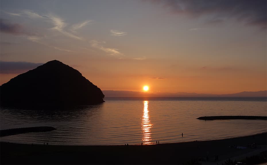 伝統行事「ナマハゲ」の文化が息づく男鹿は見渡す限り日本海という風光明媚な温泉郷でもあります。東北屈指の夕陽スポットで日本海に沈む夕陽がとてもドラマチック。観光スポットも多く、お食事も男鹿名物の「石焼料理」などがあります。