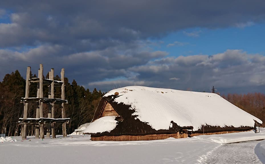 縄文時代前期~中期(紀元前約3,900~2,200年)の大規模な集落跡である三内丸山(さんないまるやま)遺跡。たくさんの住居跡や土器、石器などが出土し、この地で1,500年もの長期間、定住生活が営まれていたことがわかっています。42ヘクタールもの広さの遺跡には、三内丸山遺跡のシンボルといえるの掘立柱建物(ほったてばしらたてもの)と大型の竪穴建物が復元され、現代に蘇った縄文の遺跡をたどることができます。
