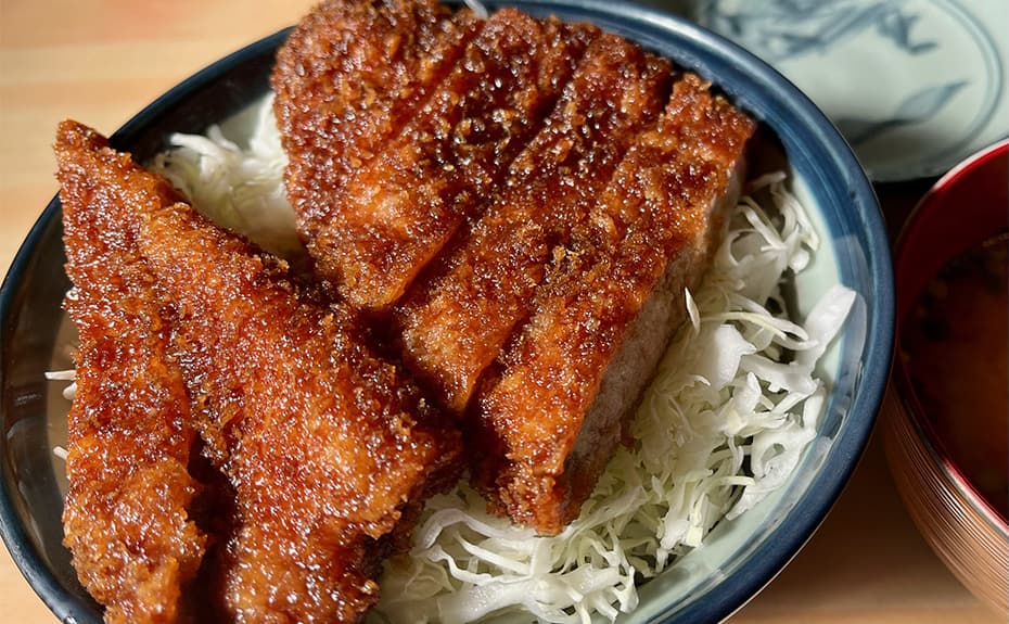 会津のご当地グルメ、ソースかつ丼。大正時代から親しまれてきた会津庶民の味です。ご飯の上にキャベツを敷き、揚げたてのカツをオリジナルのソースで絡めてのせる。見た目より軽い口当たりです。