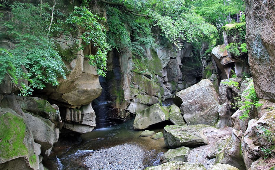 名取川の水に浸食されできた迫力ある奇岩が約1㎞続く渓谷。一緒に見た二人は幸せになれると噂の「覗橋ハート」は恋人の聖地に認定されています。大切な人と橋の上から一緒に覗いてみてください!