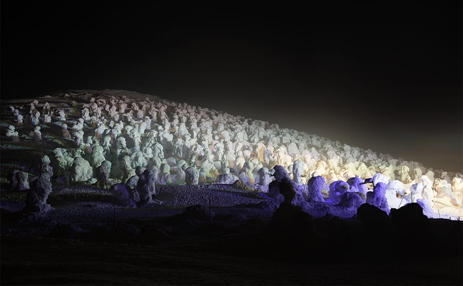 蔵王連峰の特別な気象条件と植生が織りなす、世界的に知られる自然の芸術品「樹氷」。 その美しい景観は世界でも評判で、一目見ようと訪れる人が絶えません。 昼と夜で一変する樹氷の表情も必見です。