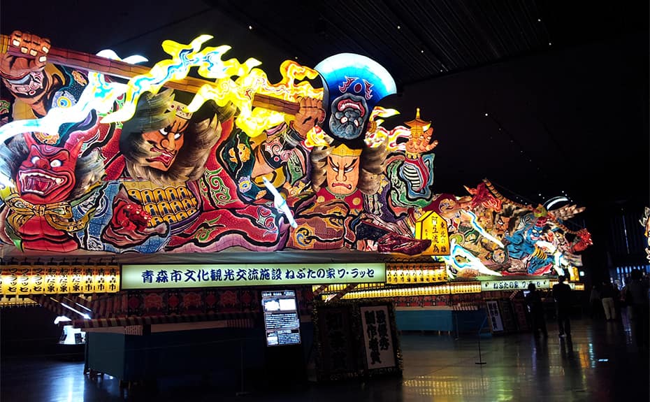 青森ねぶた祭は300年以上の歴史を誇り、国の重要無形文化財にも指定されている祭です。毎年8月2日~7日に開催される祭には、世界中から多くの人が集まり、最終日の7日には花火とともに海上運行が行われます。ねぶたの家 ワ・ラッセはそんな青森ねぶた祭の魅力を一年を通して感じられる観光施設です。