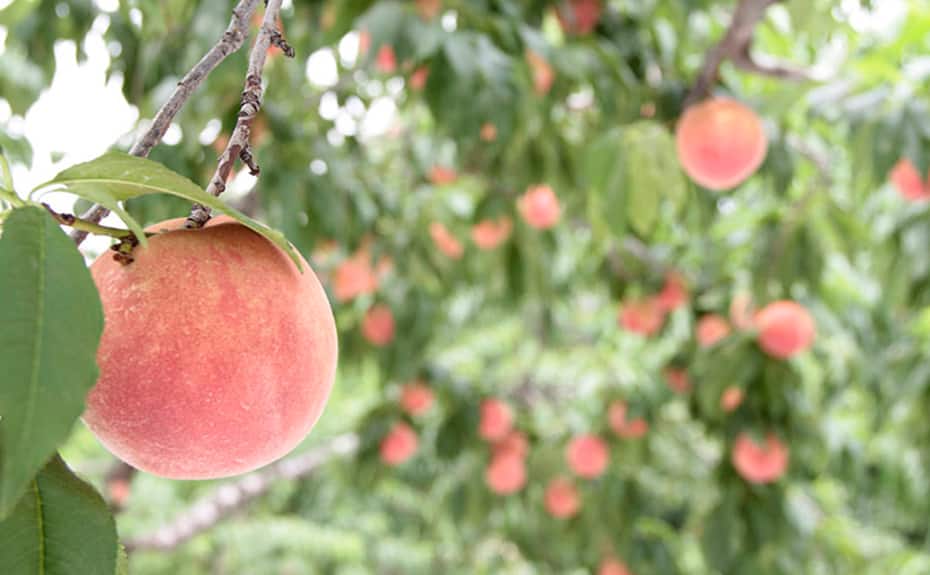 福島は全国でも有数のくだもの王国です。福島市では、盆地特有の気候と風土を生かして、初夏のサクランボ、真夏のモモ、秋のナシやブドウ、そして初冬の蜜入りリンゴなど季節ごとにくだものを楽しむことができます