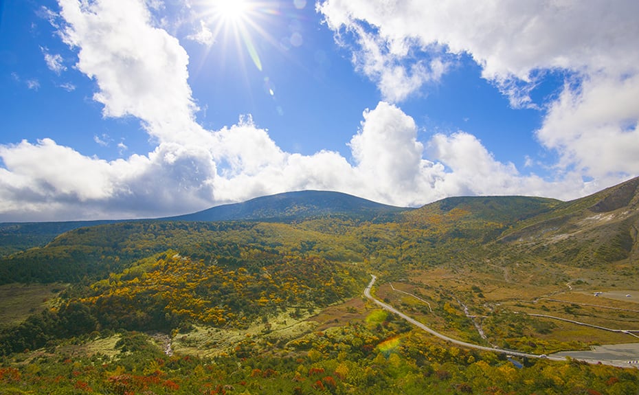 最高標高1,622m、高湯温泉から土湯峠まで吾妻の山並みを縫うように走る無料の観光道路。「日本の道100選」にも選ばれています。